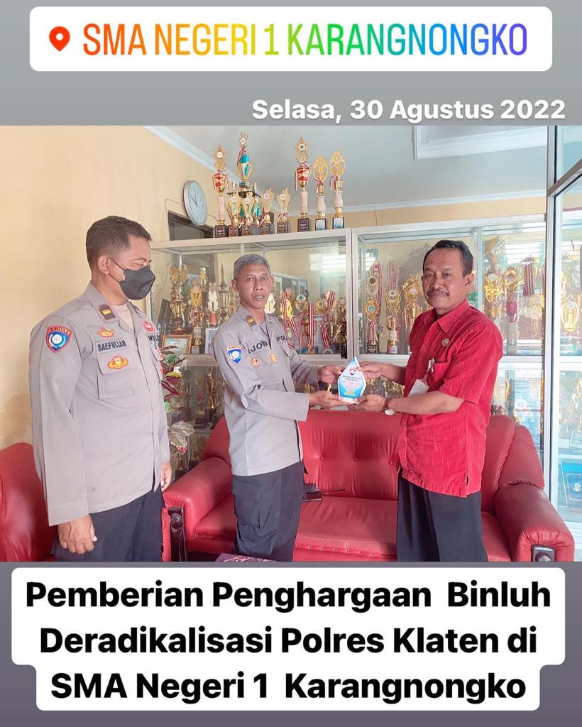 Pemberian Penghargaan Binluh Deradikalisasi Polres Klaten di SMA Negeri 1 Karangnongko