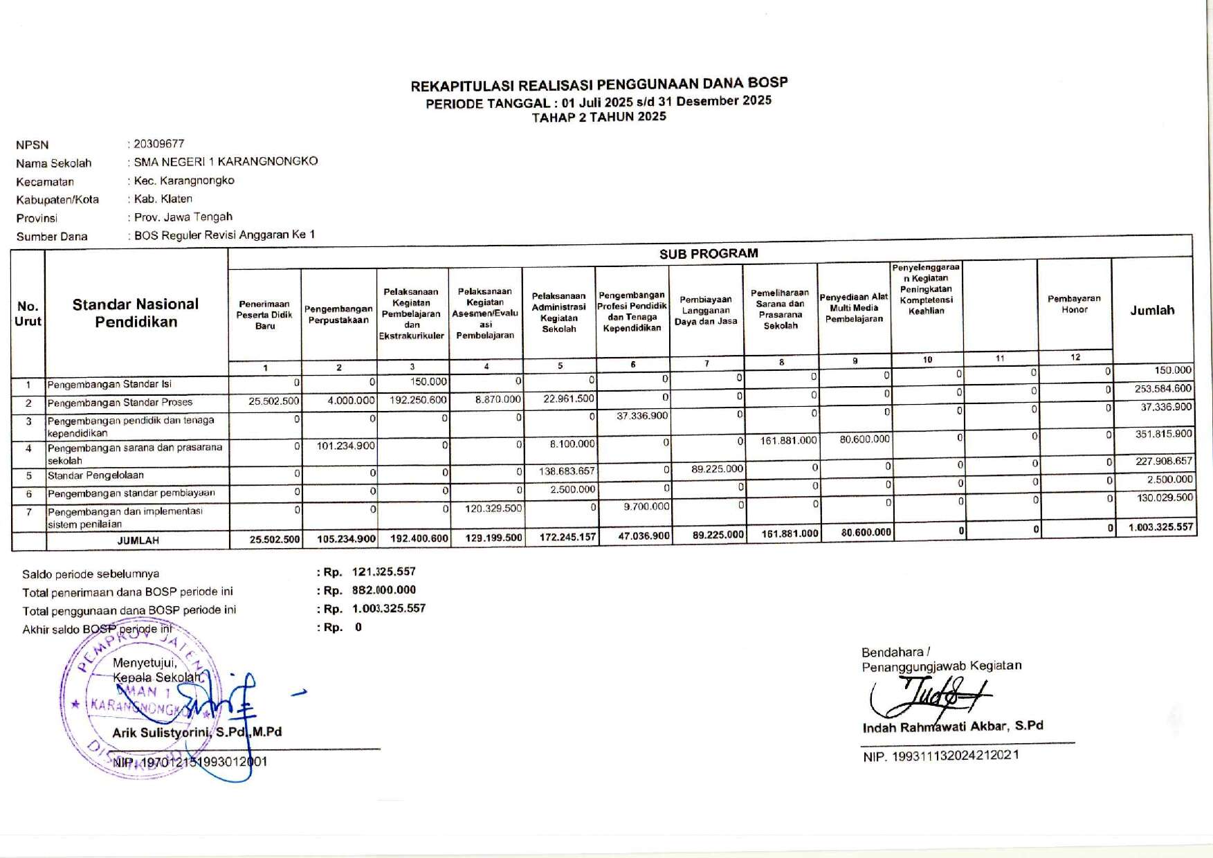 LAPORAN REALISASI PENGGUNAAN DANA BOS REGULER TAHAP 2 TH 2025